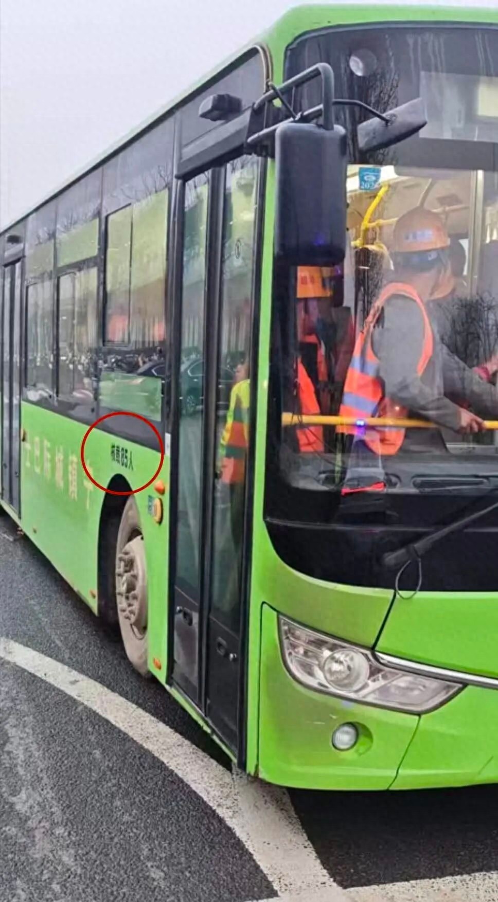 一辆满载建筑工人的“公交车”